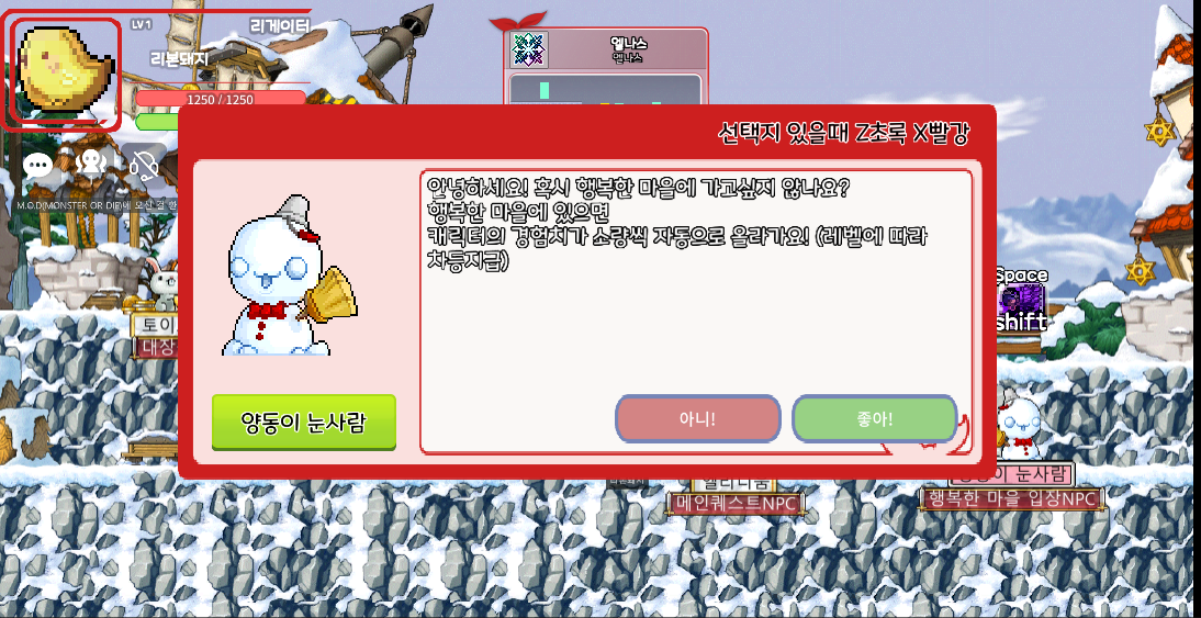 메이플스토리 월드 M.O.D 패치노트ver 1.2.0M.O.D 월드에도 크리스마스가 찾아왔습니다!+ 광장 곳곳에 크리스마스 오브젝트들이 추가 되었습니다.+ 기본 광장 배경음악이 행복한 마을 BGM으로 변경 되었습니다.대기화면 리본돼지가 겨울ver으로 바뀌었습니다!크리스마스 이벤트 퀘스트 - 루돌프 도우기돌프 루를 도와서 엘리트 몬스터들이 드랍하는 크리스마스 선물을 모으자!돌프루의 퀘스트 선물 1개 모아오기를 완료하면 토이토이에게서 남은 선물들을구슬,티켓,물약 등 다양한 아이템과 교환 할 수 있습니다.돌프루의 퀘스트 선물 1개 모아오기를 완료하면 토이토이에게서 남은 선물들을 구슬,티켓,물약 같은 다양한 아이템과 교환 할 수 있습니다.또한 크리스마스 선물을 77개를 모아오면 보주를 제작 할 수 있습니다!멀티..